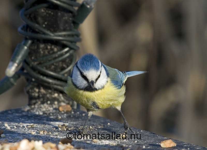 Kuddvivorna såg jag inte så mycket av, jag var nämligen inte ensam om att läsa GP. Det var tjockt med folk i växthuset! Ställde mig istället en bit från ett fågelbord och tittade på blåmesarna som flög fram och åter och snappade åt sig godsaker. De var ruskigt snabba! Men några fastnade ändå på bild.
