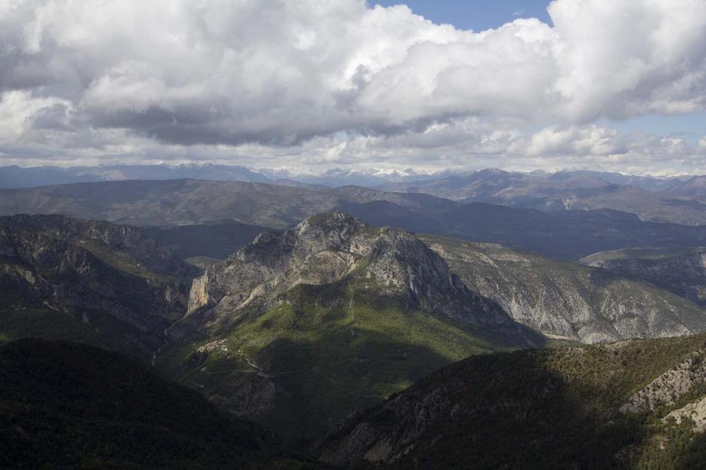 Alla initierade läsare vet dock att detta inte är Antibes. Antibes ligger ju vid havet och utsikten (och gullvivan) är fotade 1400 meter över havet. Jag har varit på utflykt. Kocken skulle skärmflyga och jag följde med som hovfotograf. Väl framme i Gréolières så fanns det inte en kotte på plats, än mindre några skärmar i luften. Inget bra tecken så det blev en bilutflykt norrut istället. Utsikten är fotad på en utkiksplats norrut. Det växte massor av gullvivor, lavendel och blåsippor på samma plats.