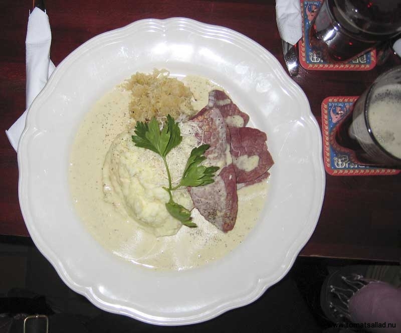 Själv har jag sett många favoriter komma och gå, exempelvis rostbiffsalladen (den stod aldrig på menyn men gick att få så länge rostbiff fanns på menyn) och biffsteaksandwichen. Den senare vill jag härmed kräva omedelbart återinförande på menyn! Vid senaste besöket provade jag rimmad oxbringa med senapssås och riven pepparrot, fast bytte ut rotmoset mot potatispuré. Vällagat, oxbringan nästan föll isär, men inte någon ny favorit.