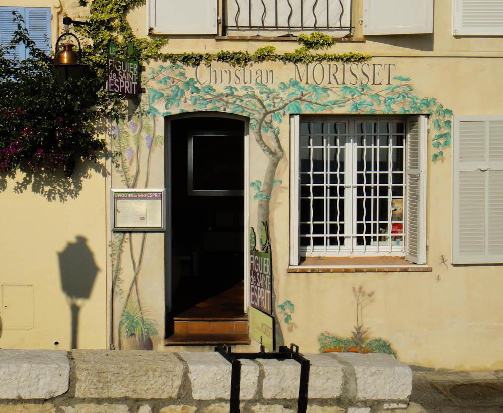 Nu har jag snokat genom fönstren från andra sidan av huset och därifrån är det ingen tvekan om att det är en fin restaurang. Det såg urmysigt ut. Deras specialitet är enligt den röda boken lamm från Vallauris och vin från Bellet och St Jeannet. Meny €59-79.