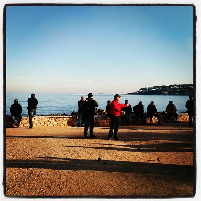 Antibes är sig likt. Gubbarna spelar pétanque i parken i eftermiddagssolen. Det gör de varje dag. Med åren har de blivit tämligen skickliga. I slutet av deras matcher ligger inte kloten mer eller mindre samlade runt lillen för de pangar bort kloten så att bara något eller i enstaka fall ett par blir kvar. En av de vassaste på att snärta bort motståndarens klot och själv ligga kvar är killen som står med ryggen mot kameran och tittar ut över havet.