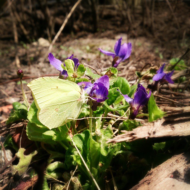 Det går fort nu, förra helgen var det citronfjärilarnas tid i samma skog. Då dansade de i varenda skogsglänta men nu såg jag bara någon enstaka. Fjärilar är notoriskt svåra att fotografera med mobilkamera men på hemvägen såg jag den här i ett dike och den satt snällt kvar tills jag var tillräckligt nära.